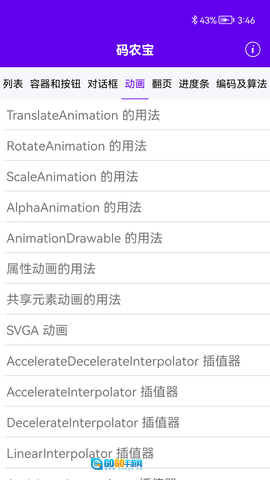 码农宝具备快速查看安卓设备信息的功能,能让你便捷获取手机屏幕分辨率、型号、设备ID、可用内存等关键信息。这对开发人员而言十分实用,便于他们依据这些信息调整优化软件。除设备信息外,码农宝还包含多种功能,如列表、容器、对话框、动画、翻页、图表、编码与算法、多媒体、传感器及实用工具等。这些功能覆盖开发全流程,无论你需要哪类功能,码农宝都能满足需求。