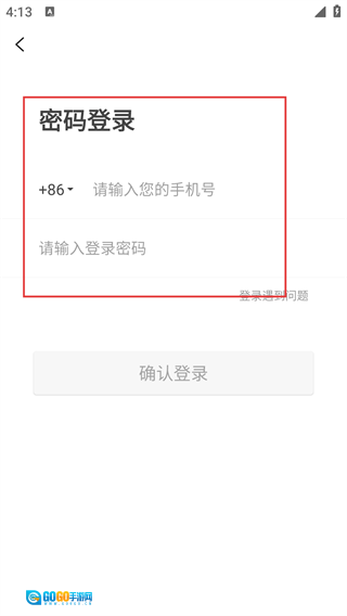 4、切换至【密码登录】界面后,在【+86-请输入您的手机号】栏位填写手机号,并输入登录密码,全部完成后即可点击确认登录按钮进行操作。