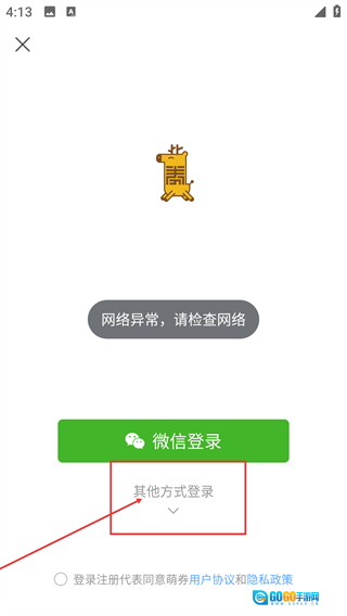 1、当登录界面显示【网络异常,请检查网络】时,点击【其他方式登录】能够展开更多与登录相关的选项。