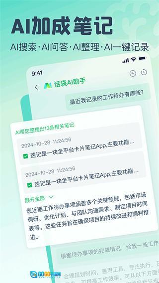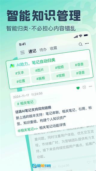 话袋是一款功能强大的新一代AI卡片笔记软件,专注于为用户带来更高效、便捷的笔记记录体验。作为云端AI卡片笔记的安卓手机版,它融合了先进的智能AI技术,借助AI搜索、AI问答、AI整理等多种智能功能,通过AI赋能,能够一键生成用户所需的笔记内容。有需要的用户不妨前往话袋,打造专属于自己的个人赛博助手。