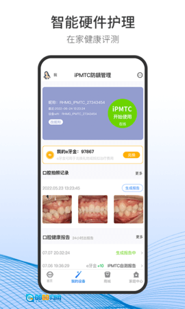 随身牙e的优势体现在两方面:一是能提供全方位的口腔健康管理服务,二是融入了智能化技术应用。比如IPMTC智能可视牙菌斑清洁仪和智能可视牙刷,能让用户更方便快捷地完成口腔清洁,从而有效预防牙齿疾病;还有口腔自测AI智能全景片头颅侧位片报告分析功能,可精准评估用户口腔健康状况,助力用户及时发现问题并采取针对性治疗措施。