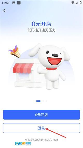 1、在“0元开店”页面,点击【登录】按钮,进入账号密码登录操作页面。