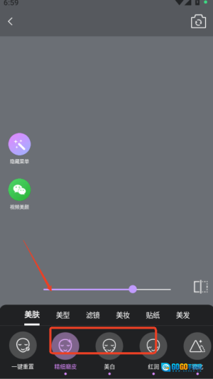 3、通过滑动操作来调节美颜强度,还能对磨皮、瘦脸、大眼等参数进行细化设置,以此打造出自然且无痕的妆感。