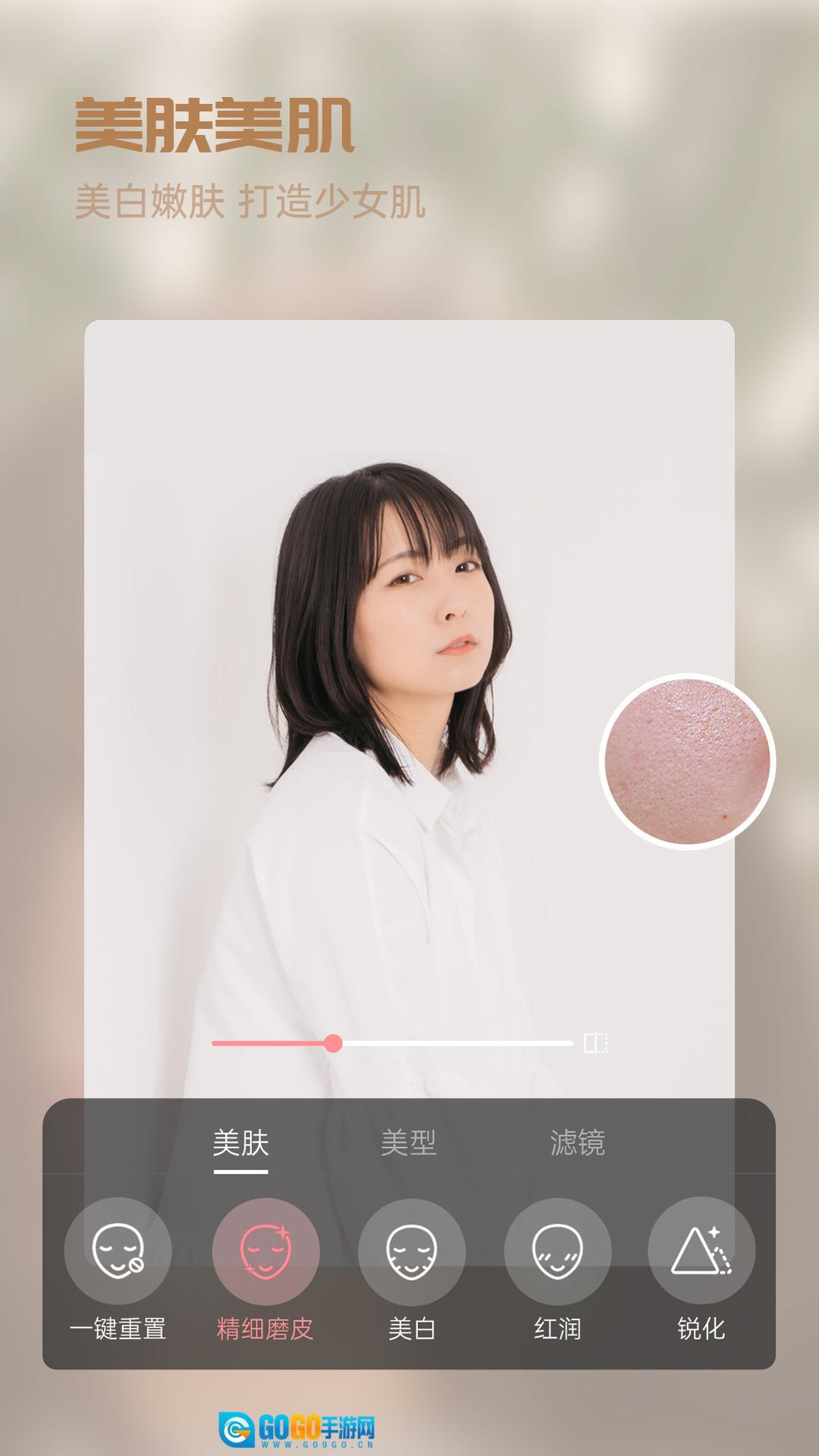 1、美白、美化、打造少女感肌肤,一键美颜可以给你最好的拍照体验。