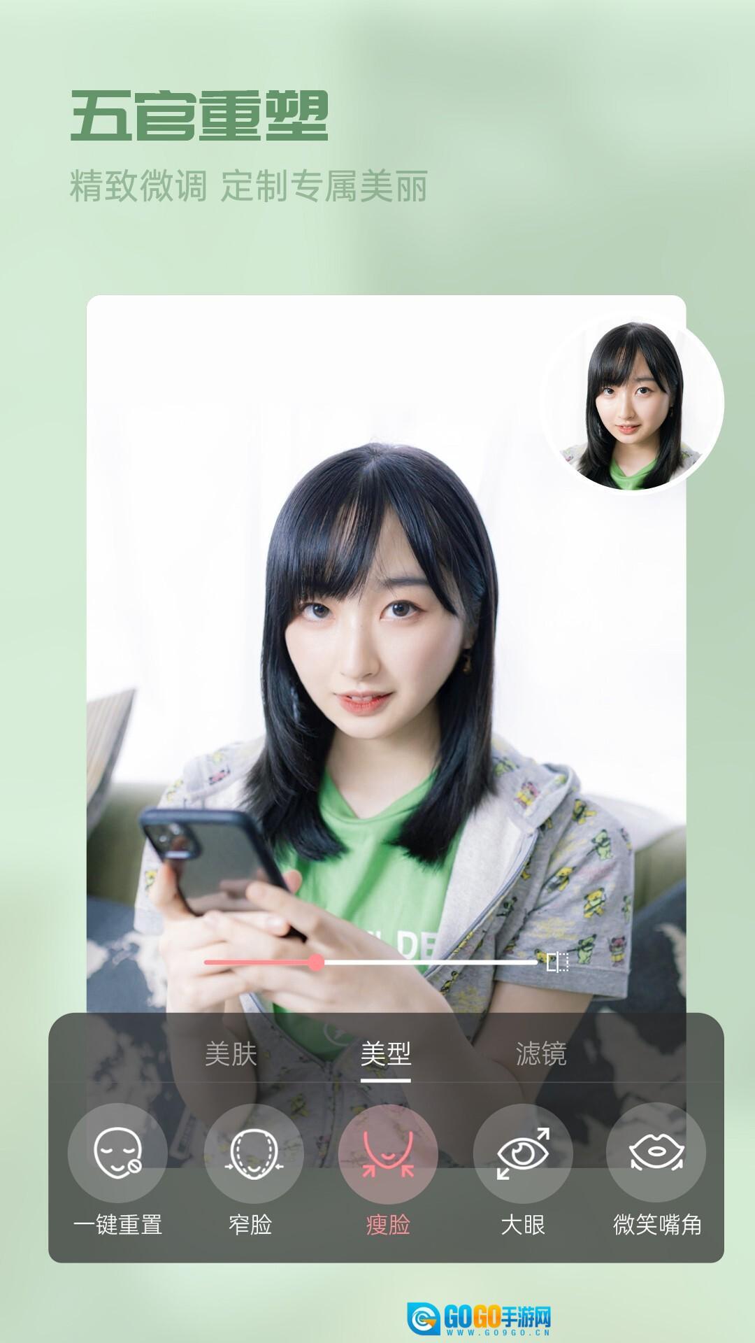2、精致的调整,面部模型,定制的美,你可以点击屏幕并使用软件。