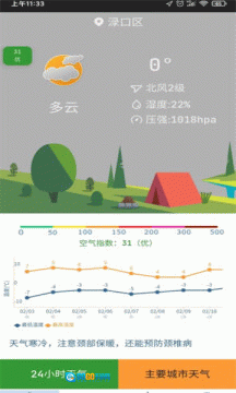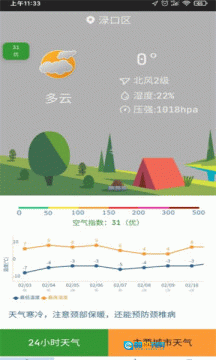 2、各类天气都配有精美的专属动画,用户查看天气时能感受到惬意的生活氛围。