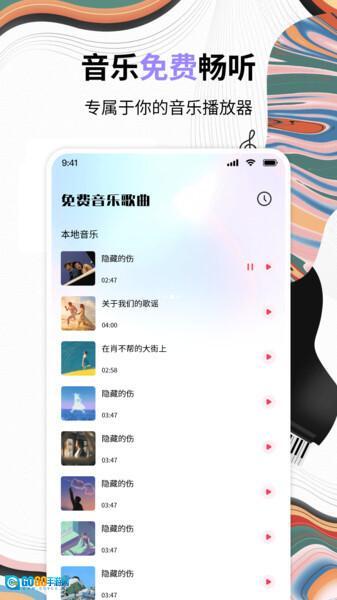 免费音乐歌曲是一款优质实用的手机音乐播放平台,为喜爱听歌的朋友们推送最新及热门歌曲。平台上在线歌曲类型丰富多样,持续更新各类精彩曲目,涵盖热门与精选等多种资源,用户可免费聆听自己喜爱的音乐。