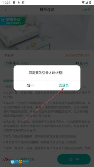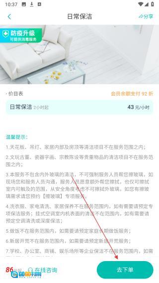 2、查看日常保洁详情、价目等,确认需求点【去下单】。