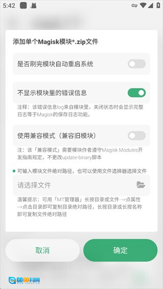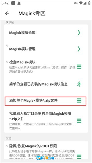 在【Magisk专区】里,您能选择检查Magisk模块,也可以对这些模块进行管理,另外,您还能够通过添加单个Magisk模块的*.zip文件来拓展系统的功能。