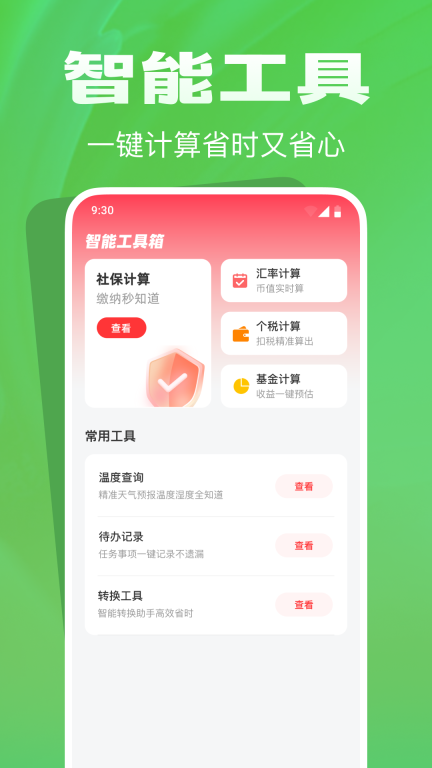 3、社保、个税、汇率等计算工具,以及温度查询、待办记录等常用功能。