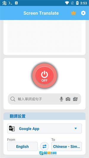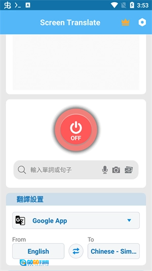 1、开启软件:当您首次打开ScreenTranslate这款应用时,映入眼帘的是醒目的红色“OFF”键。轻点此键,即可准备开启翻译之旅。