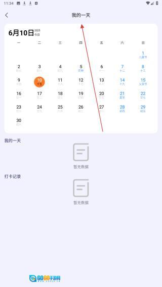 2、从首页点击【我的一天】,查看6月10日及日历内当天的数据与打卡记录。