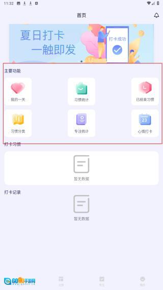 1、在应用首页,点击【我的一天】【习惯统计】等主要功能区的图标,即可进入对应的模块进行操作。