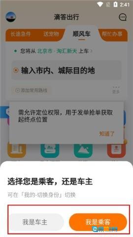 1、初次启动应用,系统会提示您选择身份,直接勾选“我是乘客”即可进入。