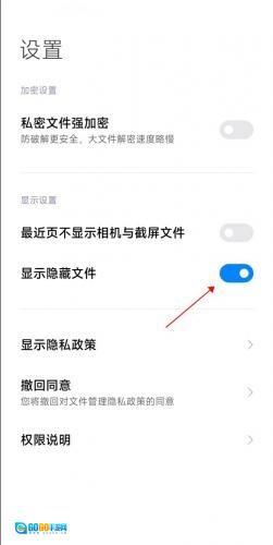 3、需要将显示隐藏文件勾选上。