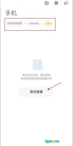 4、返回文件管理中找到android-data文件夹,点击前往查看。