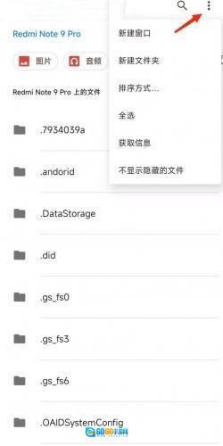 5、点击右上角的三个点服务,勾选显示隐藏文件。