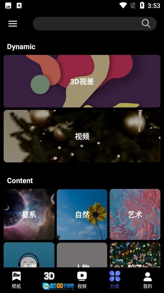 3、汇集了海量动态壁纸的资源库,无论是3D视觉,4D动态还是视频都应有尽有。