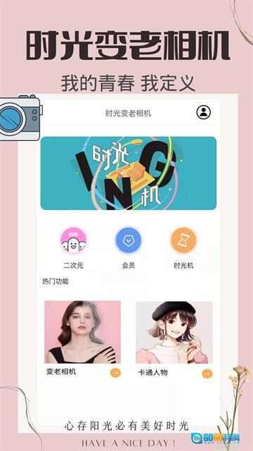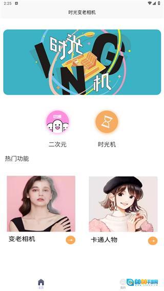 2、软件首页提供二次元、时光机、变老相机、卡通人物等拍摄功能。