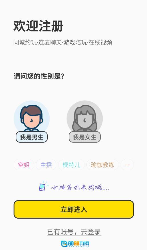 1、首次打开时,需要先选择性别(请注意该选项一经确认无法更改),这是注册的第一步。