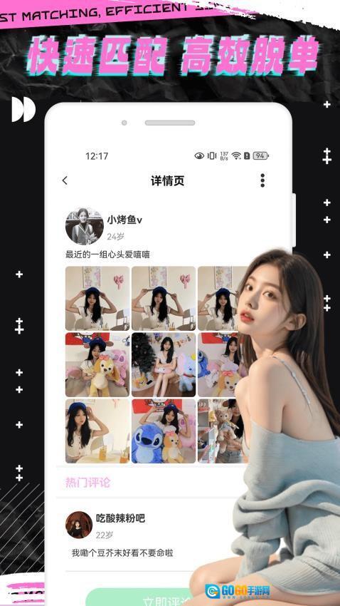 1、智能推荐匹配系统:每日定时更新优质用户推荐列表,根据地理位置距离、兴趣爱好标签智能匹配潜在好友人选。