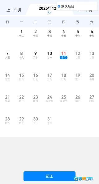 1、进入主页之后,大家就能在这里选择日期,点击记工。