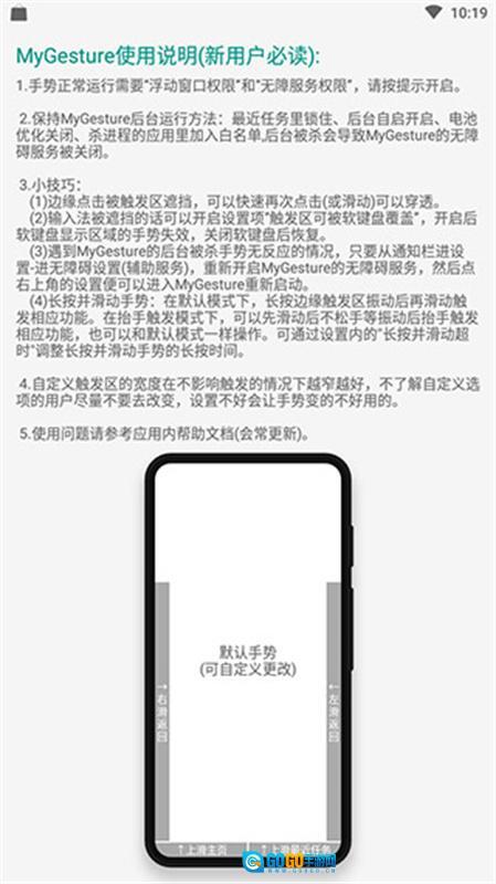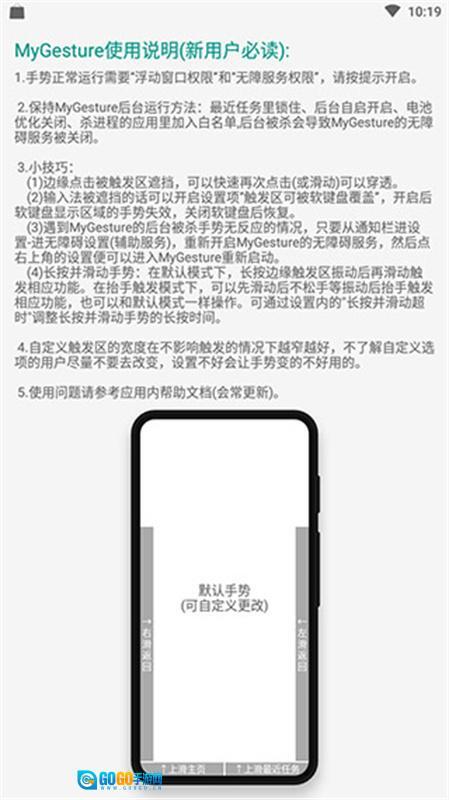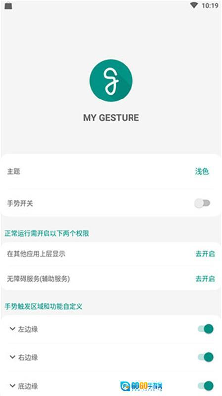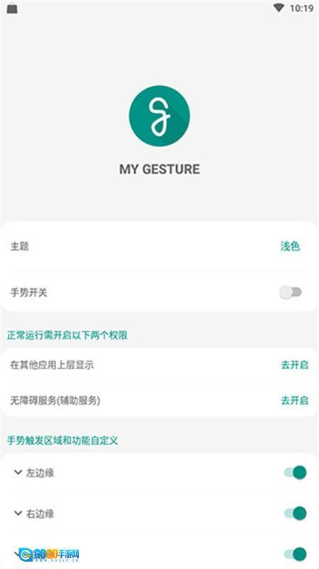 1、手势正常运行需要“浮动窗口权限”和“无障碍服务权限”,请按提示开启。