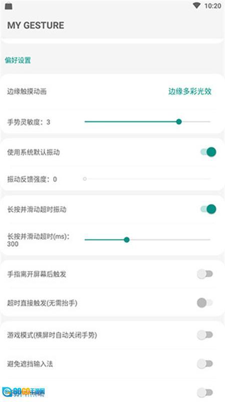 4、自定义触发区的宽度在不影响触发的情况下越窄越好,不了解自定义选项的用户尽量不要去改变,设置不好会让手势变得不好用的。