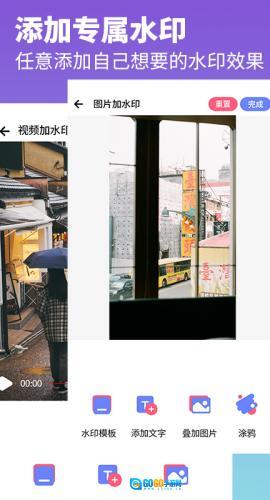 支持添加文字、图片或视频水印,并可叠加照片。