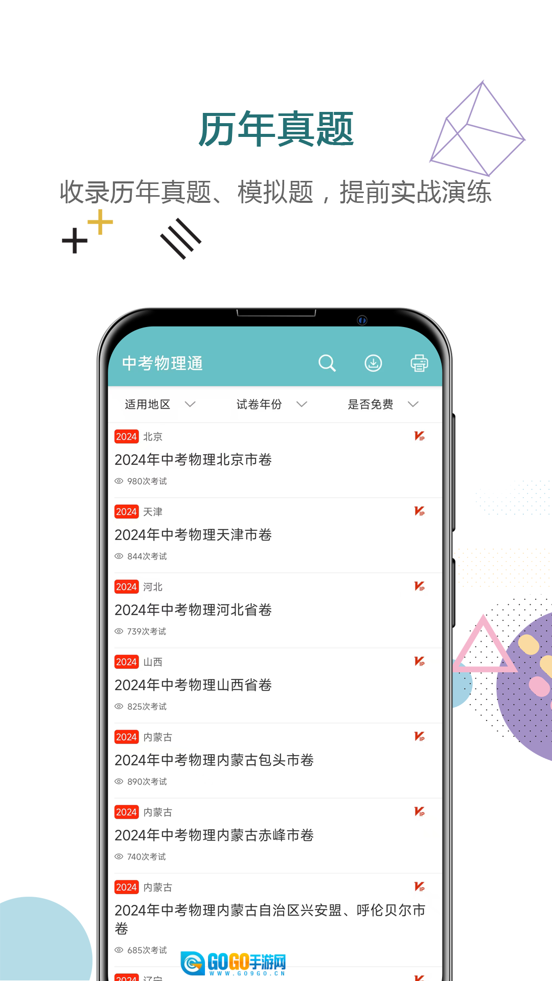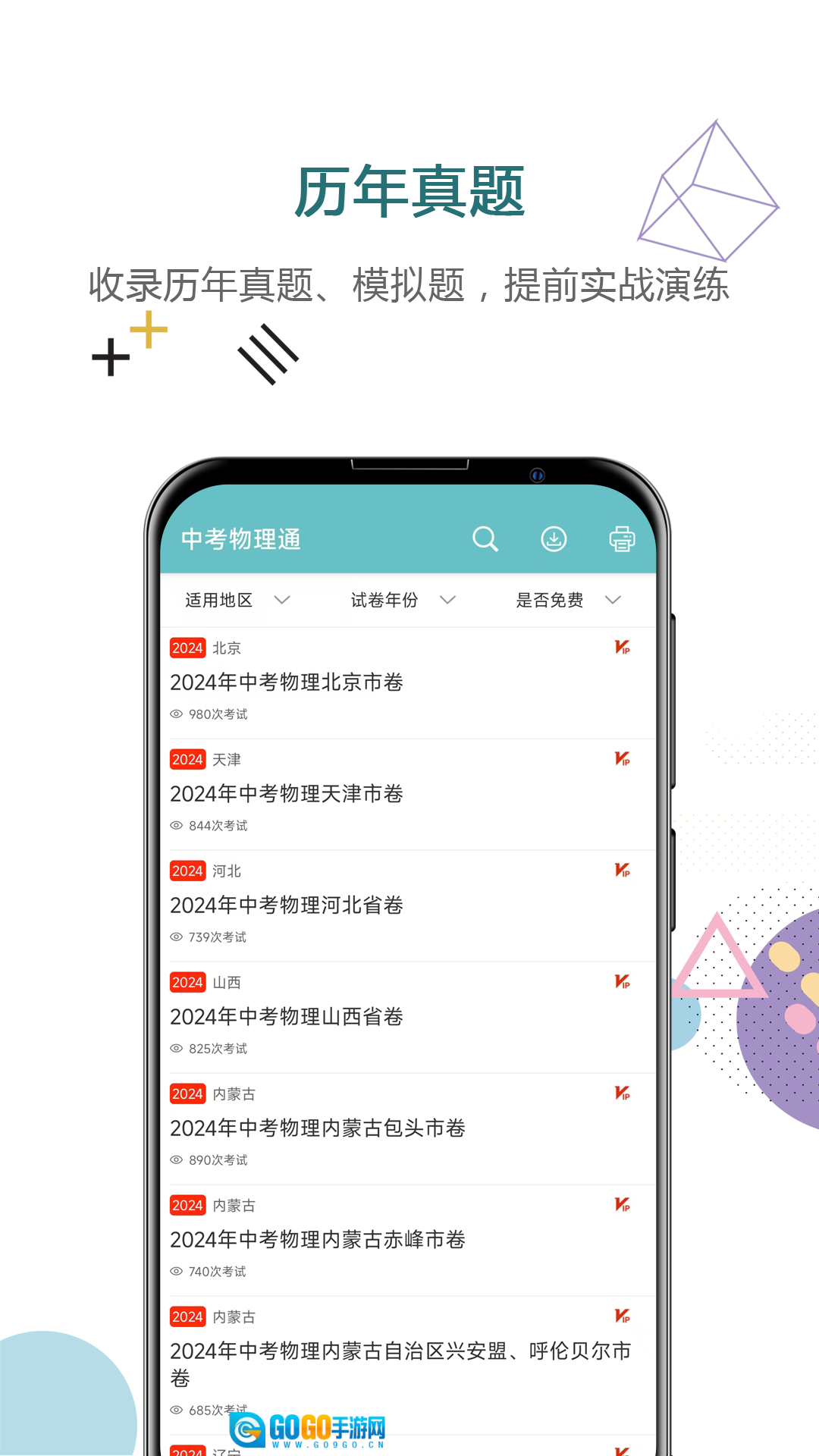 中考物理通是一款专为初中学生打造的必备中考物理学习工具,涵盖多个主流初中物理教材版本,支持按教材版本和初中年级精准筛选对应物理试题;平台汇聚全国历年初中物理考试真题与模拟题库,提供免费刷题、模考实战功能;同时整合初中全年级物理核心知识点,配套专题强化训练与在线刷题模块,助力学生高效备战中考物理。