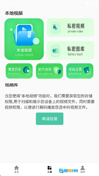 3、工具页面包含本地视频、私密视频、私密图库、软件加密等功能模块;