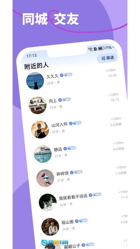 2、借助基于地理位置的精准匹配功能,能快速帮你找到身边志同道合的朋友,不管是兴趣爱好方面,还是生活圈子层面,都可以轻松寻觅到契合的伙伴。