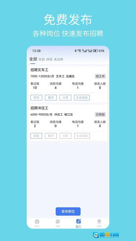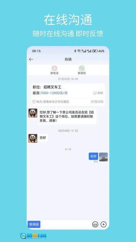 3、支持在线沟通交流,蓝领工友与企业可借助聊天功能直接对话,快速解答疑问,推动合作开展。