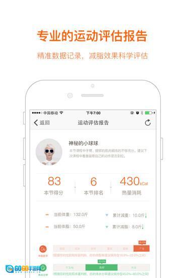 更新更全的健身视频课程,细化36种不同体型,5种难度,3个进程,超过80万节减肥健身适配课程。全国首家精准适配,满足不同需求的你。可根据你的形值适配适合你的运动课程,也可以自己选择课程,想练哪就练哪。