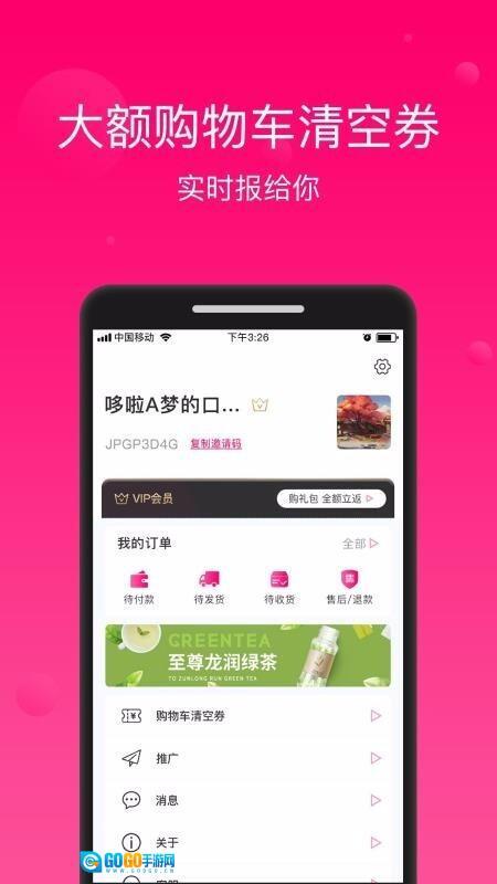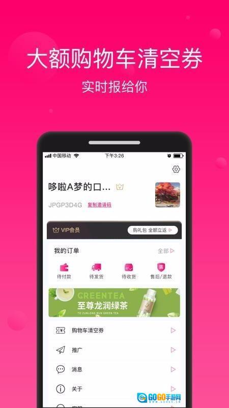 优惠购物,系统配备海量优惠券,用户下单支付时就能享受优惠折扣。