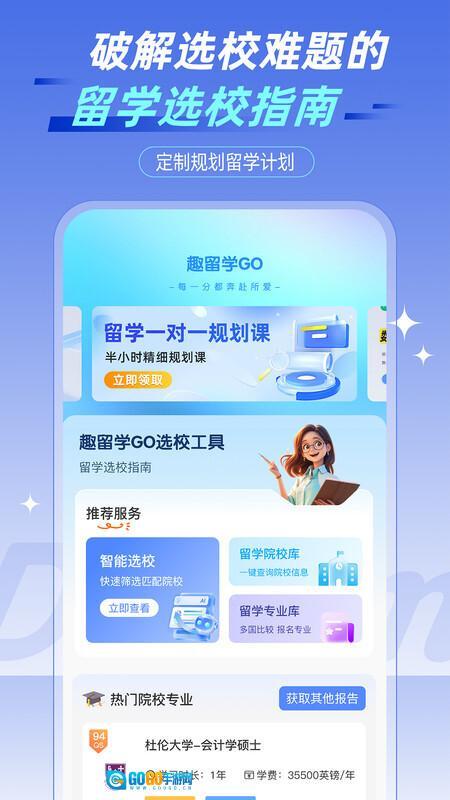 趣留学GO是一款覆盖留学全流程的服务软件,能为有留学梦想的用户提供一站式解决方案。其中智能选校推荐功能借助智能算法,精准匹配适配的院校与专业,助力提高申请成功率;个性化留学时间轴则会生成专属规划表,清晰涵盖从语言考试到网申提交的各个关键环节。