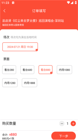 5. 选好自己心仪的价格区间和演出时间,提交订单就完成了。