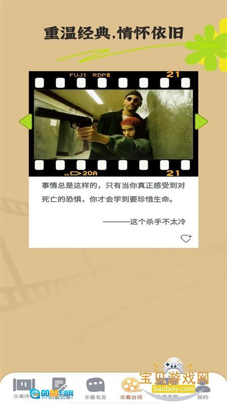 乐看台词:提供超多的经典影视台词,用户可以在线欣赏查看,通过经典台词的查看来重温经典影视剧情。