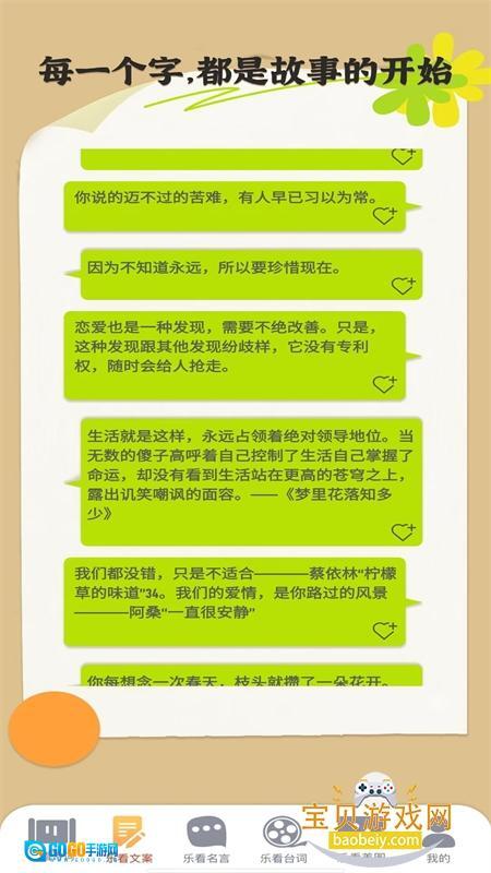 内容丰富:聚享乐看App涵盖了诗词、文案、名言、台词、美图等多个方面,满足用户多样化的需求。