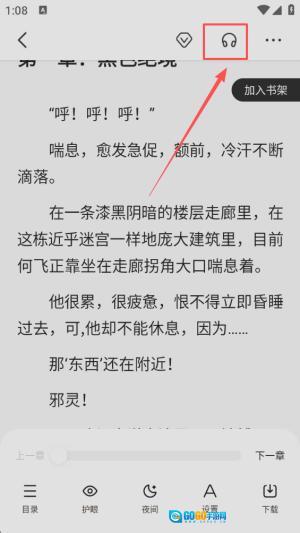 4、点击页面上方的耳机图标,开启听书功能,轻松享受故事。