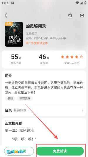 3、点击“免费试读”选项,享受书中精彩内容的初步体验。