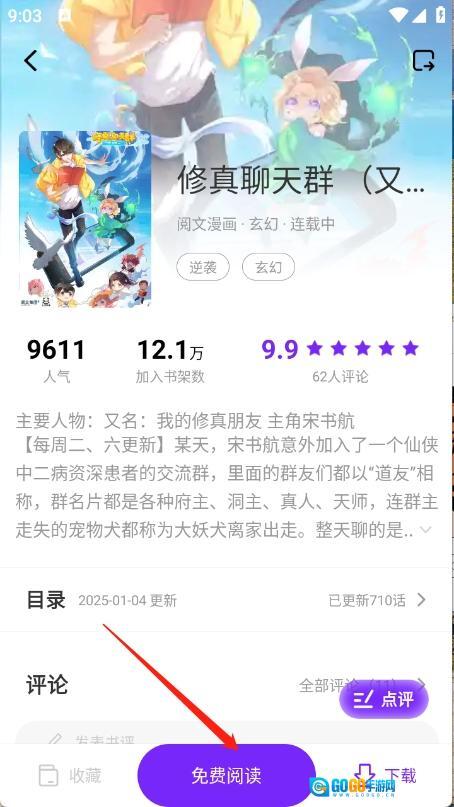 4、点开想看的漫画点击“阅读”。