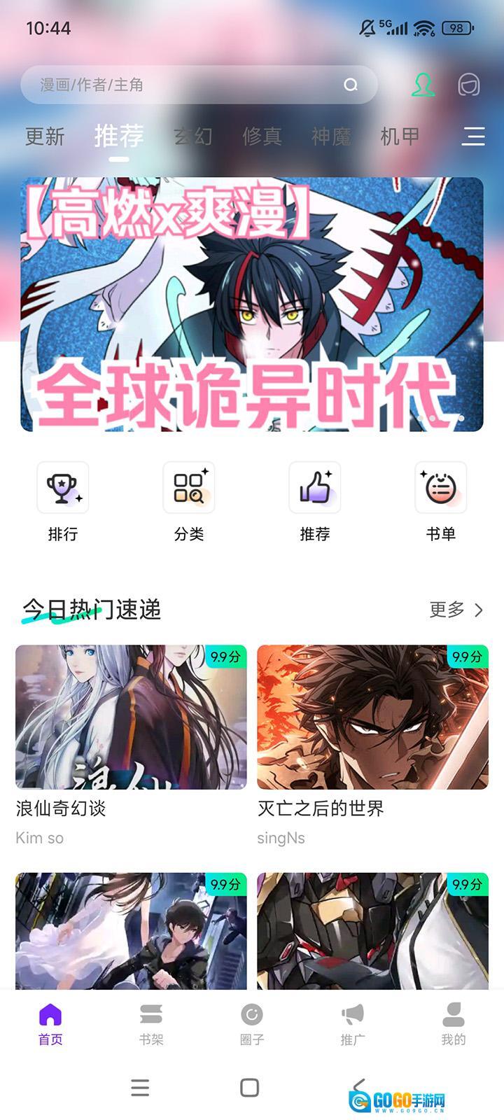 2、首页为用户提供了多种类型的漫画,涵盖玄幻、修真、神魔、奇幻等类别。