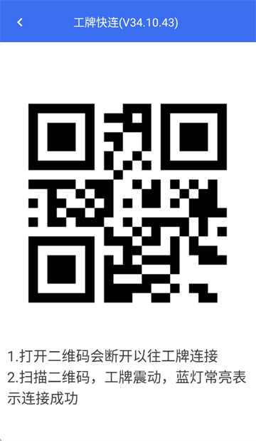 2、选择工牌快联功能。3、打开二维码时会断开之前的工牌连接。4、扫描二维码后,工牌震动且蓝灯常亮即表示连接成功。
