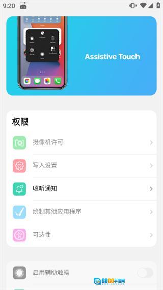 7、把所有权限都开启后,点击“启动辅助触摸”,就能开启“小白点”功能了。