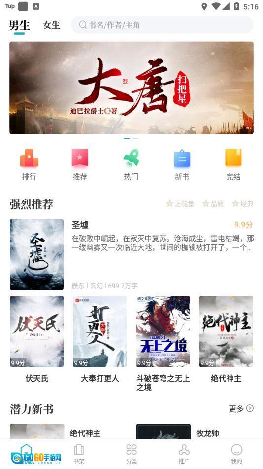 涵盖超人气网络小说、各类榜单、精细分类、男频女频、智能推荐、推荐图书;