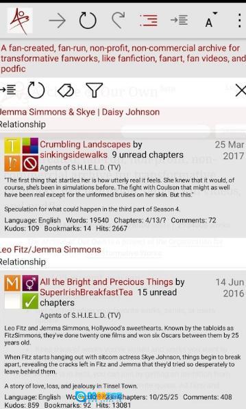 ao3手机版是一款深受用户喜爱的综合阅读软件,它汇集了海量的同人小说、诗歌、绘画、摄影等作品,为用户提供了一个自由分享、创作和欣赏同人作品的空间。作为一个热门的综合性社区平台,ao3手机版不仅满足了用户的阅读需求,还为用户提供了一个展示才华和交流心得的平台。