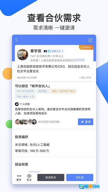 5. 免费使用:爱合伙创业项目交流与协作平台提供免费版本,便于更多创业者轻松使用该软件。