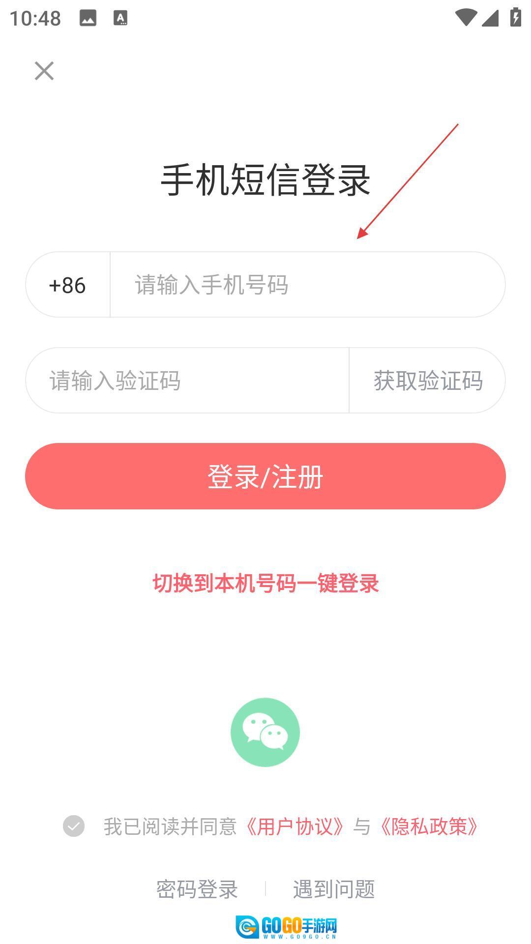 2、进入登录页,用手机号验证码方式,或切换本机号、微信登录,完成后,使用功能。