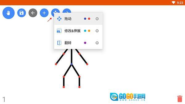 6、点击工具栏的“+”可以实现火柴人的形状改变;